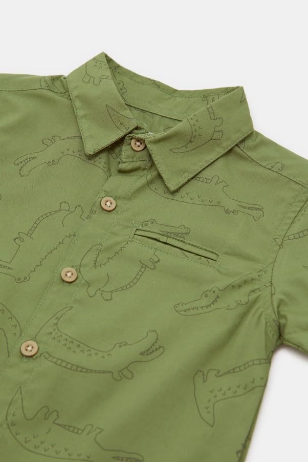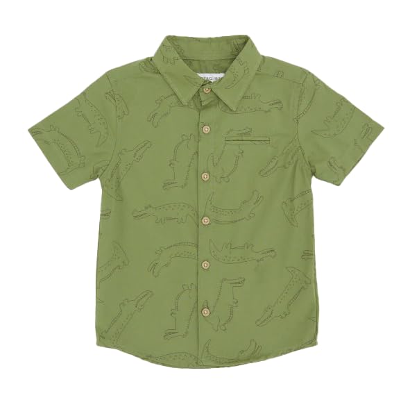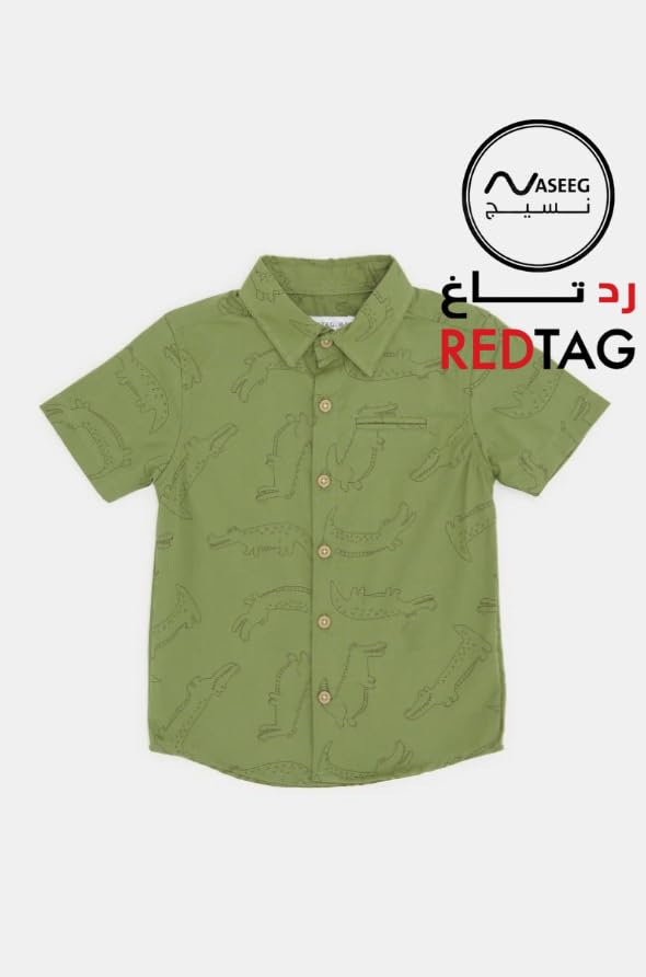 Generic - REDTAG, Boys' Green Crocodile Print Short Sleeve Button-Up Shirt, 100% Cotton, Casual Style for Toddlers 3-6 Months