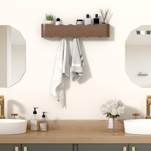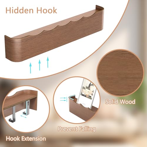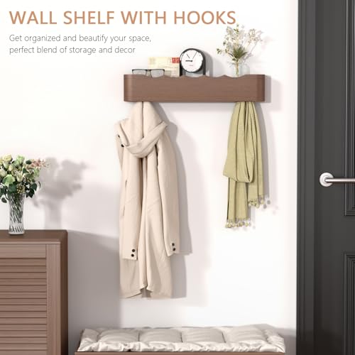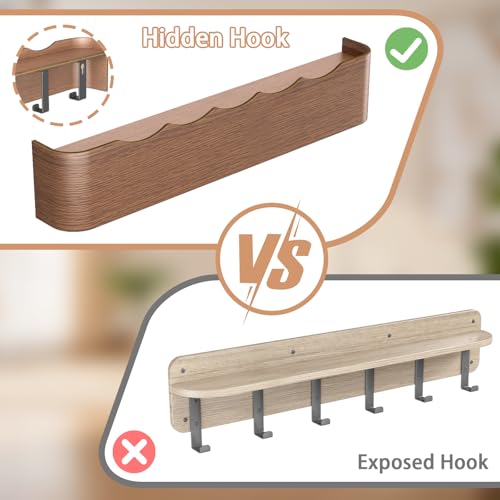 - Functional Design: Wall shelf with hooks is designed to bring both style and organization to your space. With a sleek wood finish and hidden wall hooks, it offers a seamless and clutter-free solution for your hallway, bathroom, bedroom, or living room