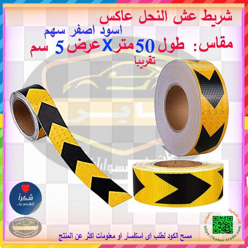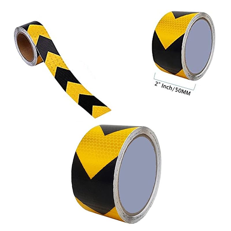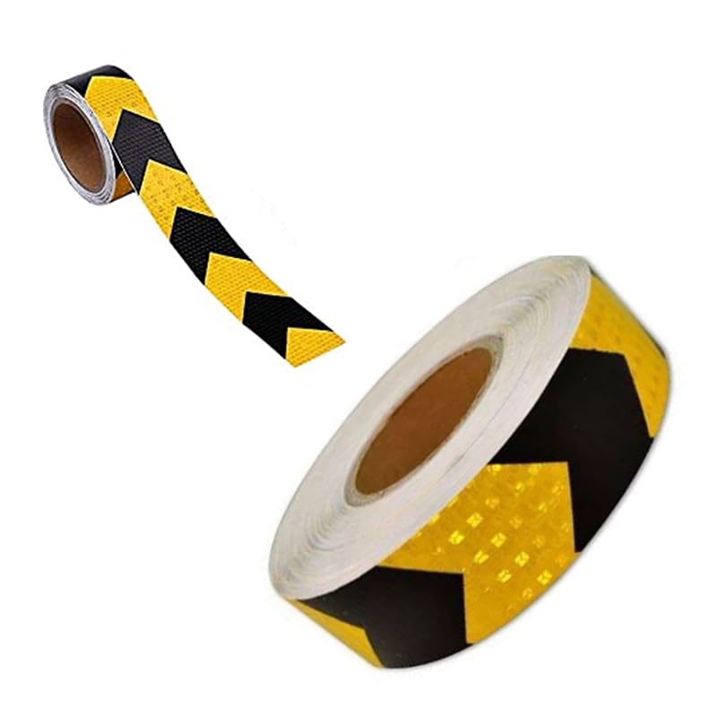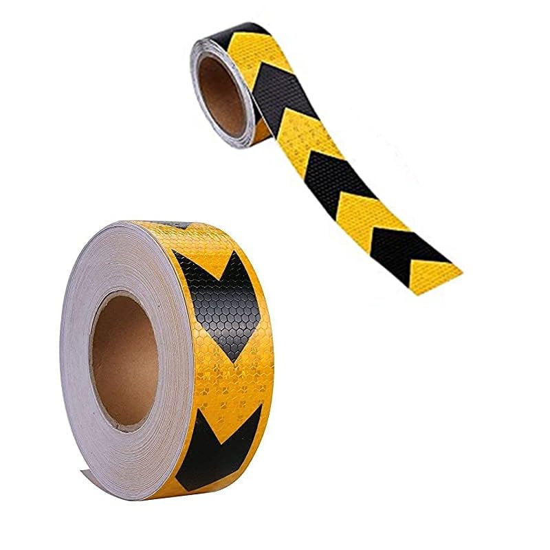 Generic - Reflective Strip, Prismatic Technology with Cubes of Micro Crystals Increases Brightness and Be Visible at Night (Bee Nest Arrow Black in Yellow, 50 Meter Length, 5 cm Wide) - KaberTrade
