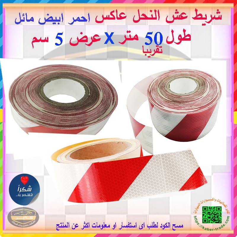 Generic - شريط عاكس ، تقنية منشورية مع مكعبات من البلورات الدقيقة يزيد من السطوع ويكون واضحًا بشكل في الليل (عش النحل مائل ابيض فى احمر ، طول 50 متر، عرض 5 سم) - من كابر تريد