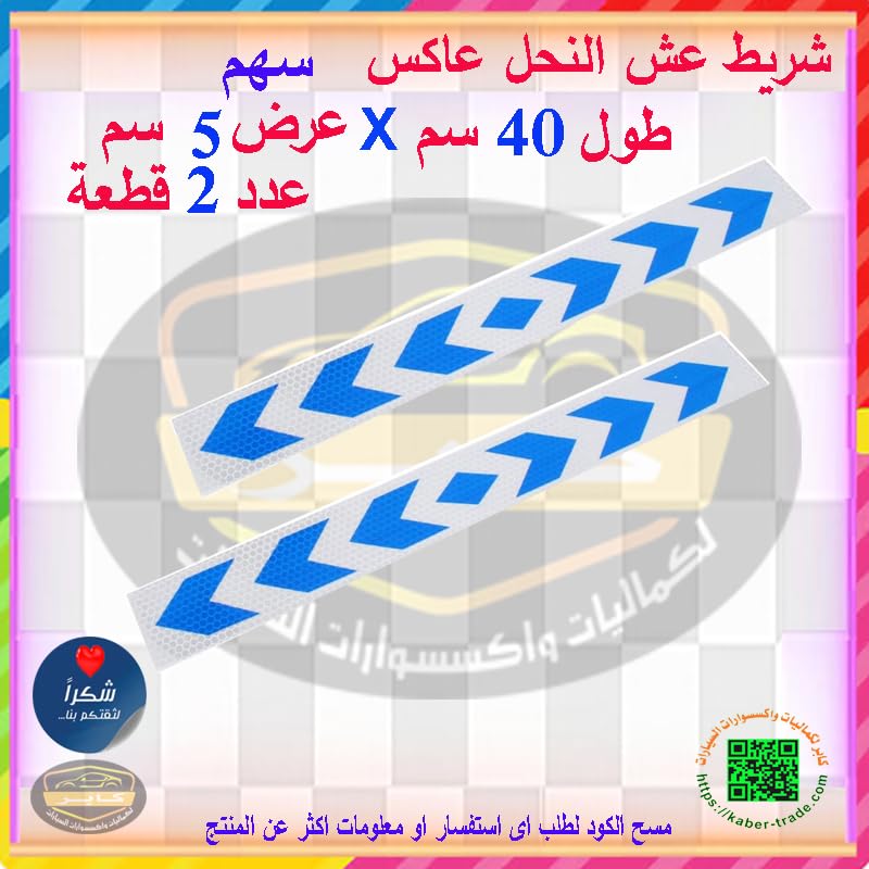 Generic - Reflective Strip, Prismatic Technology with Cubes of Micro Crystals Increases Brightness and is Visible at Night (Bee Nest Blue Arrow in White, Length 40/5cm, 2 Strips) - KaberMisr 2020