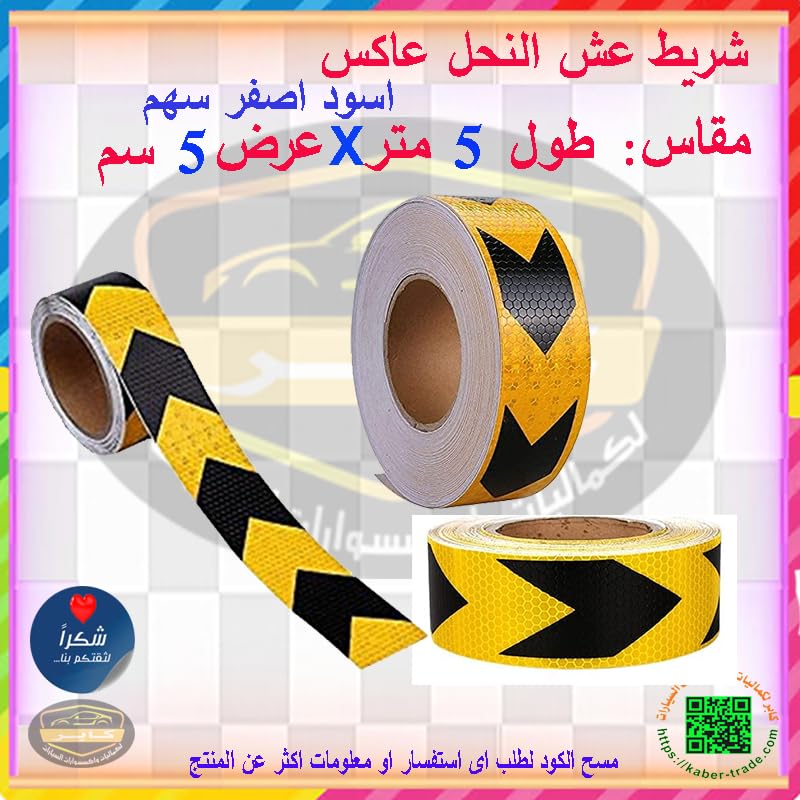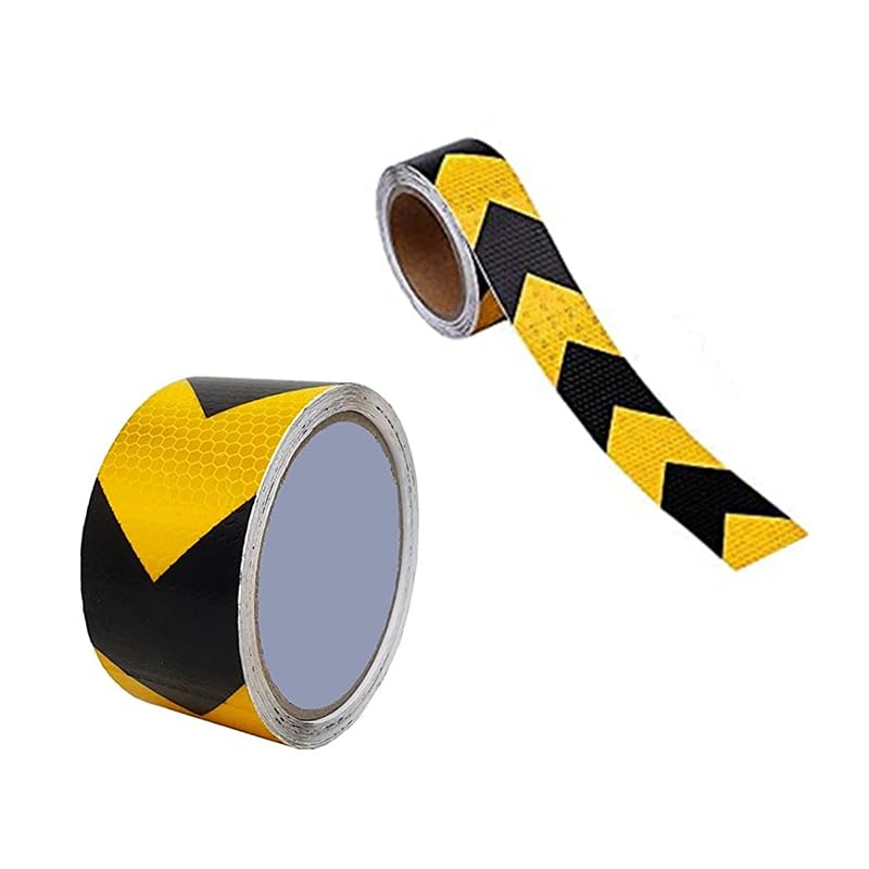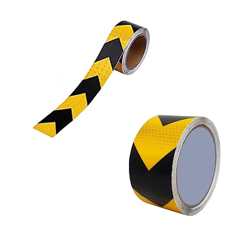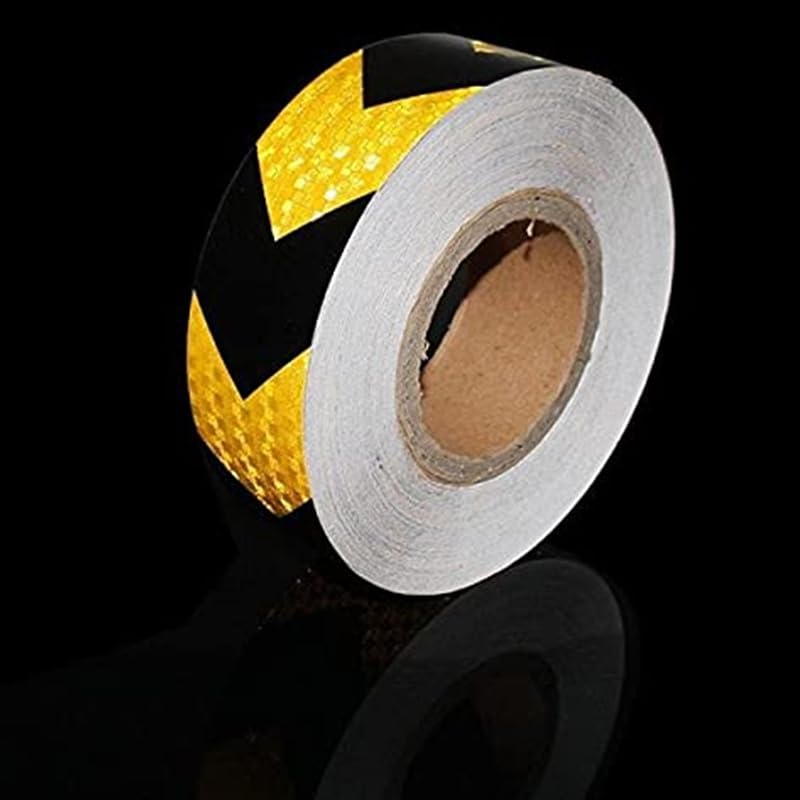 Generic - Reflective Strip, Prismatic Technology with Cubes of Micro Crystals Increases Brightness and is Visibly Visible at Night (Bee Nest Black Arrow in Yellow, 5 Meter Length, 5 cm Width) - KaberMisr 2020