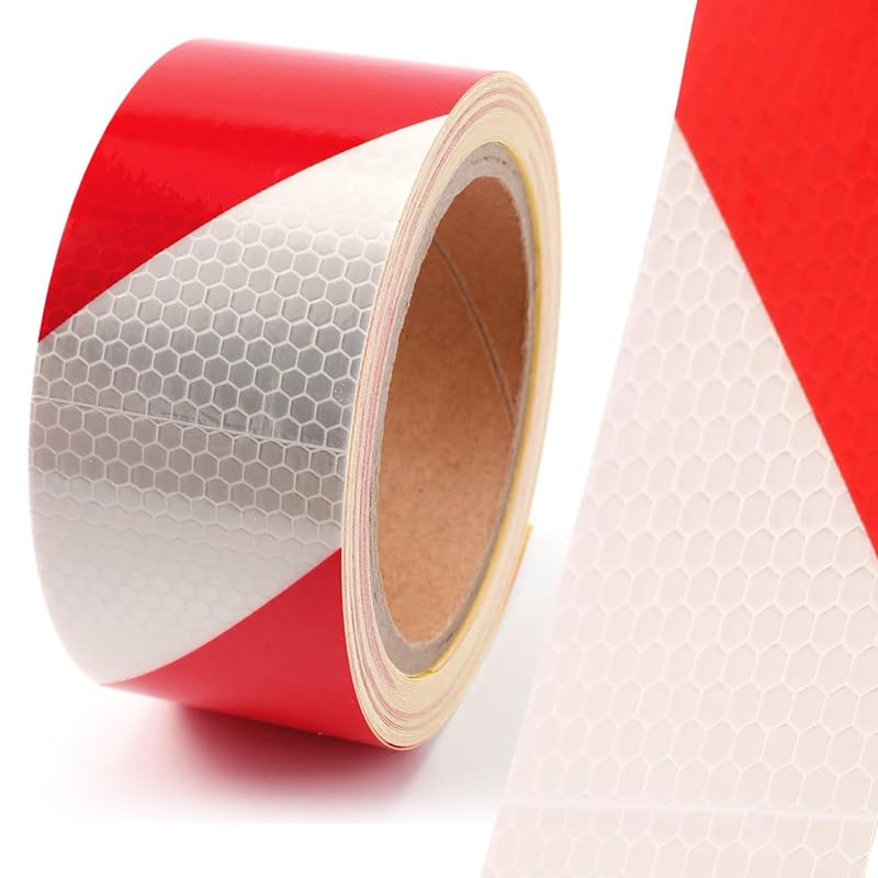 Generic - Reflective Strip, Prismatic Technology with Cubes of Microcrystals, Increases Brightness and is Visible at Night (Bees Nest Oblique White in Red, 5 Meter Length, 5 cm Width) - KaberMisr 2020