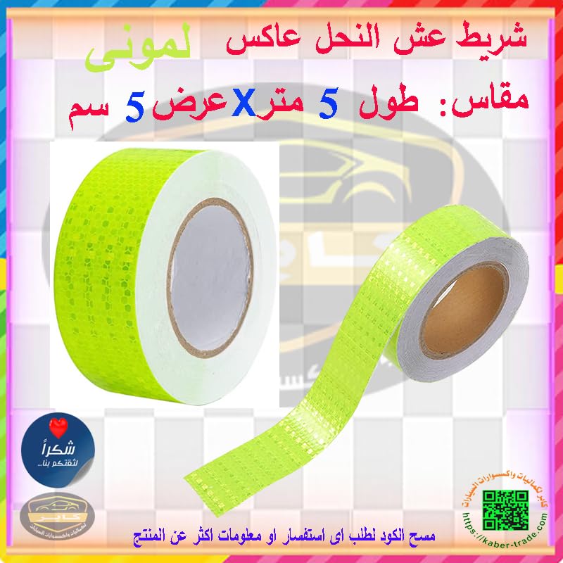 Generic - شريط عاكس ، تقنية منشورية مع مكعبات من البلورات الدقيقة يزيد من السطوع ويكون واضحًا بشكل في الليل (عش النحل لون لمونى ، طول 5 متر، عرض 5 سم) من كابرمصر 2020