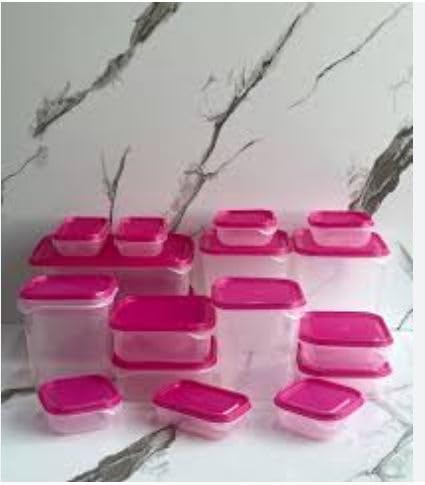 Generic - حاويات ثلاجة (مجموعة من 17 قطعة من حاويات الطعام البلاستيكية مع غطاء بينك)