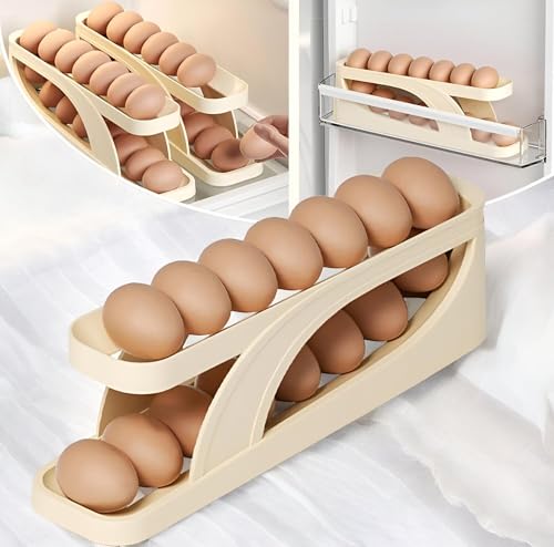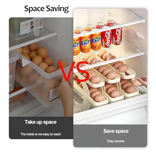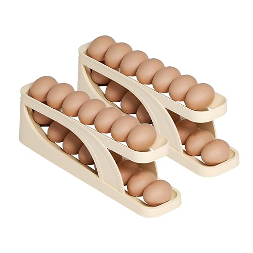 LC - موزع بيض للثلاجة - نظام تخزين بيض دوار اوتوماتيكي بتصميم مزدوج الطبقات، حل صغير وموفر للمساحة لتنظيم المطبخ (قطعتين)