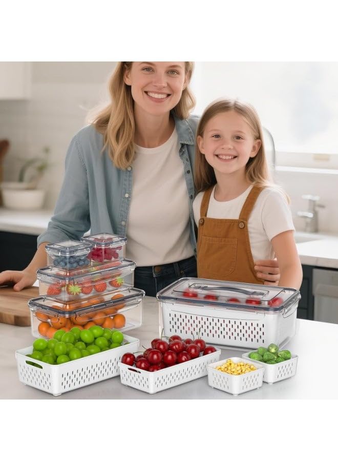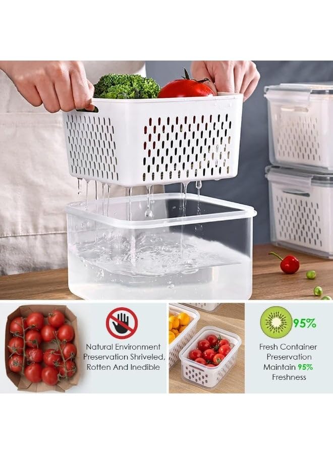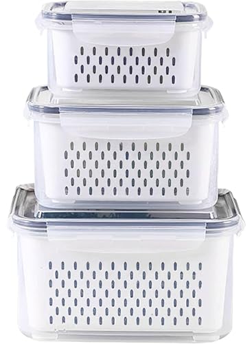 generic - Refrigerator Food Storage Container Set with Lids and Plastic Colander for Preserving Fresh Produce, Vegetables, Fruits,