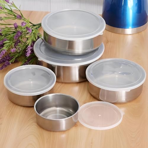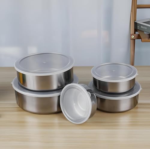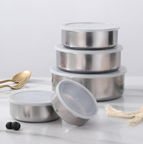 - This five-piece food storage set is made from high-quality stainless steel, ensuring durability, safety, and health for all your food storage needs. The blend of materials guarantees that the containers will stand the test of time, making them a reliable choice for keeping your food fresh longer.
