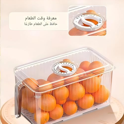 - {طور نظام الحفاظ على الطعام طازجًا باستخدام صينية التصريف} تتميز منظمات الثلاجة بتصميمها المبتكر والعملي بوجود صينية تصريف مبتكرة ومنظم للثلاجة يتيح لك التحكم بالمنبه وتتبع تواريخ التخزين وهذه الميزات تساعد على رفع المنتجات بعيدًا عن الرطوبة، مما يحافظ على الفواكه والخضروات طازجة لفترة أطول.