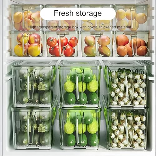 Generic - صناديق شفافة من البلاستيك قابلة للتكديس مع مقابض أمامية وصينية تصريف لتخزين المطبخ وحفظ الطعام وتنظيم الثلاجة (4 قطع)
