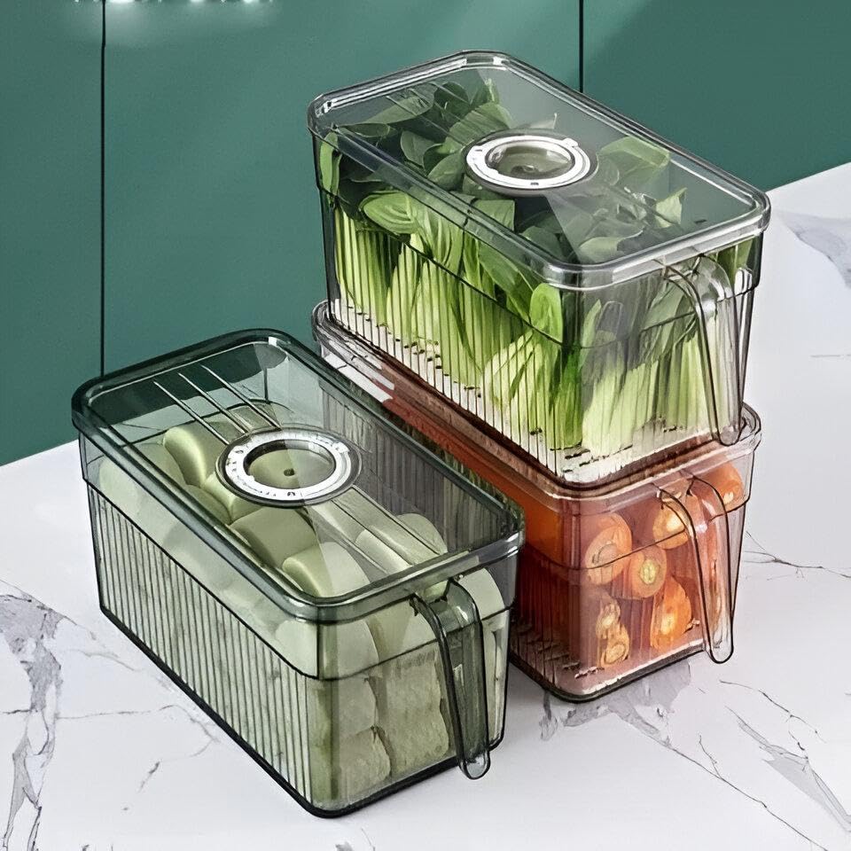 - صممت منظمات الثلاجة هذه بسعة كبيرة تصل إلى 5 ل وهي مزودة بأغطية قفل جانبية تُغلق بإحكام لمنع تسرب الروائح والهواء والماء، مما يحافظ على طعامك طازجًا ويحمي محتويات مؤن مطبخك.