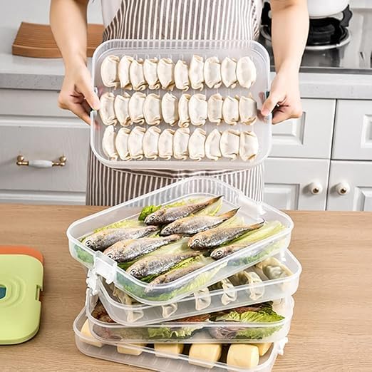 Generic - صندوق تخزين للثلاجة بغطاء، صندوق من طبقتين، حاوية تخزين طعام قابلة للتكديس للحوم والجبن، صندوق بيض طازج، منظمات ثلاجة، لون عشوائي