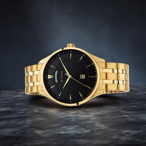 Titan - ساعة اوبولينت من الستانلس ستيل بسوار ذهبي من ريجاليا