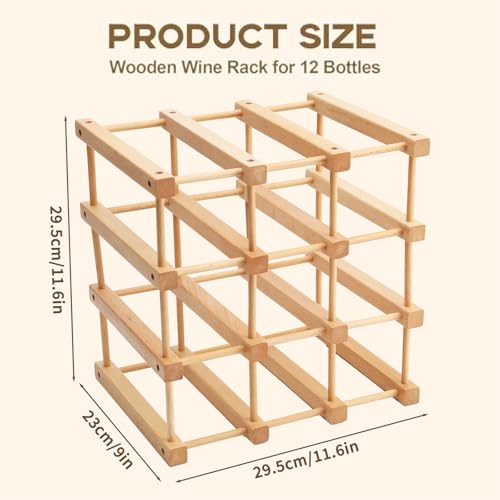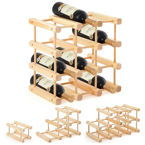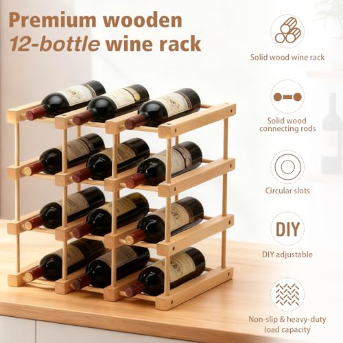 Rehomy - ريهومي رف خشبي يتسع لـ 12 زجاجة، حامل زجاجات قابل للتوسيع من 4 طبقات، رفوف قابلة للتخصيص للمطبخ والمطاعم والبار والمخزن والقبو