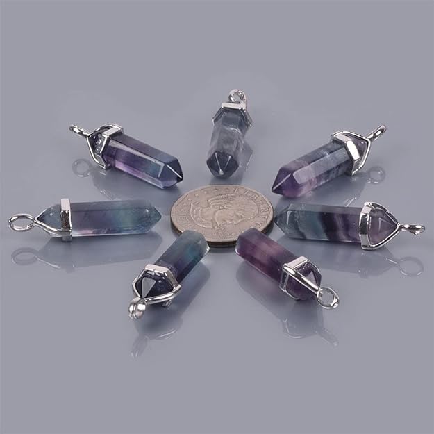 Generic - Reiki Chakra Pointed Natural Gemstone Necklace (Rainbow Fluorite)