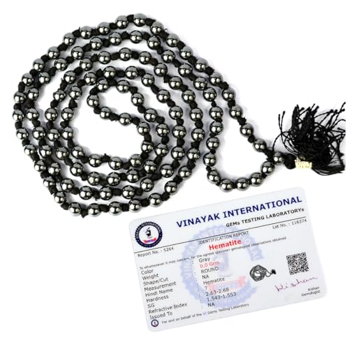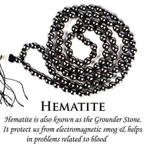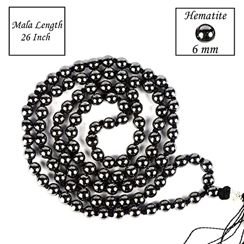 Reiki Crystal Products - Reiki Crystal Products Certified Natural Hematite Mala Semi Precious Crystal Stone 6 mm 108 Beads Jap Mala/Necklace for Reiki Healing Stones (Color : Silver), 6 mm, Natural Crystal Stone, Hematite