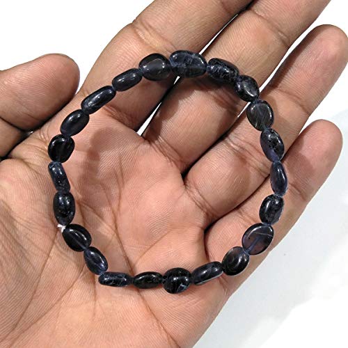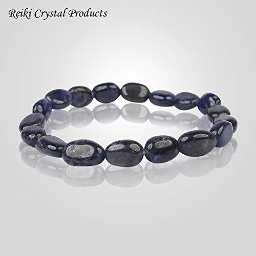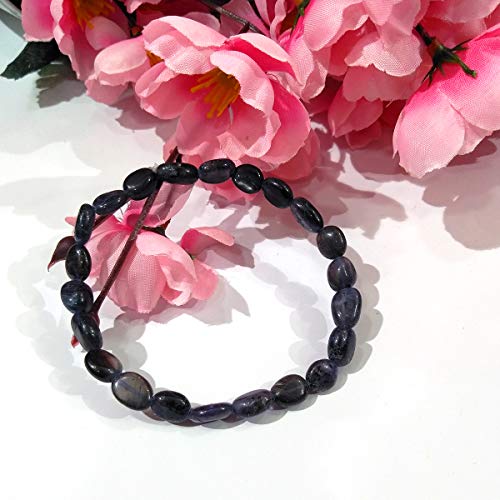 Reiki Crystal Products - Reiki Crystal Products Natural Iolite Bracelet Crystal Stone Oval Bead Bracelet Reiki Healing and Crystal Healing Bracelet for Unisex, Natural Crystal Stone, Iolite