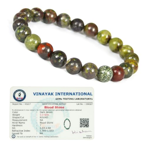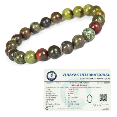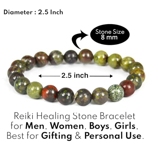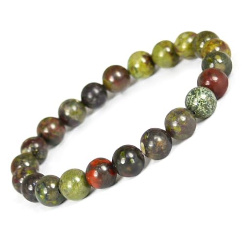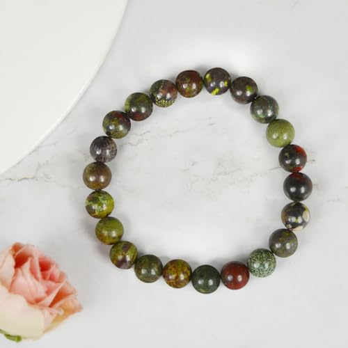 Reiki Crystal Products - Reiki Crystal Products Unisex Adult Bloodstone Bracelet Natural Crystal Stone Beads Bracelet Round Shape for Reiki Healing and Crystal Healing Stone (Color : Green, 8mm)