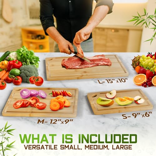 - 3 Versatile Sizes – One Set for Every Task: Includes Large (15" x 10"), Medium (12" x 9"), and Small (9" x 6") boards—perfect for slicing meat, chopping vegetables, preparing fruit, or serving cheese and charcuterie.