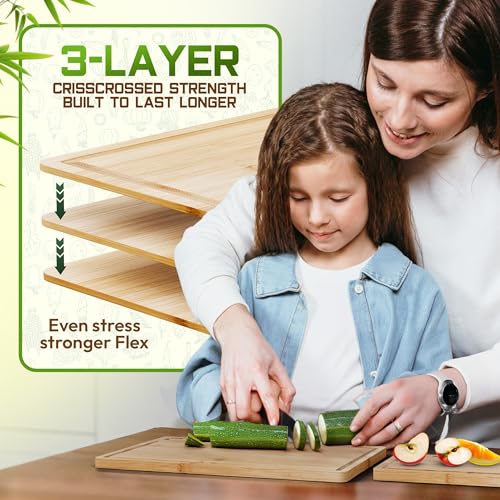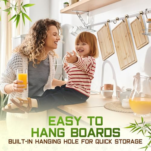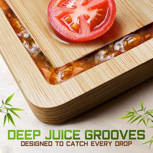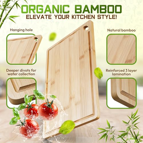 HOMVIA - Reinforced Bamboo Cutting Board Set – 3-Piece Kitchen Boards with Deep Juice Grooves, Hanging Holes, and Warp-Resistant Design – Eco-Friendly, Durable Gift for Chopping Meat, Cheese, Vegetables