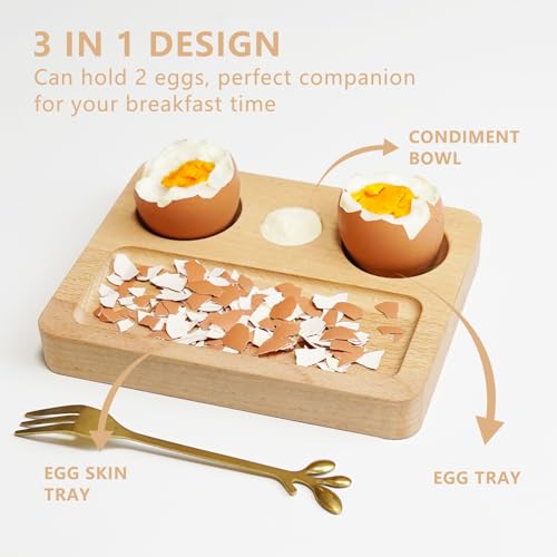 - Easy to use: our wooden egg holder has three grooves to hold eggs firmly, saving space on the table. In addition, the integrated central groove offers a special space for salt