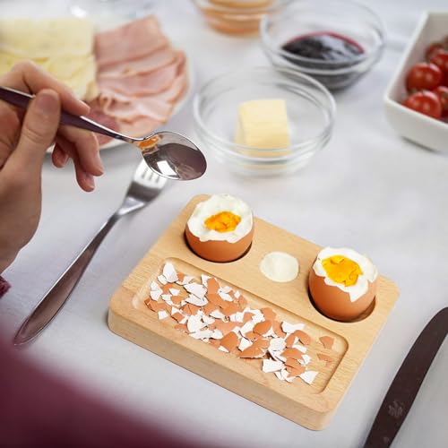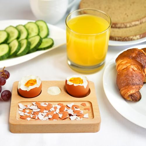 - 【High Quality Materials】Made of 100% fine beech wood, our elegant soft-touch wooden egg cup is the perfect choice to decorate any breakfast table and enjoy a hearty breakfast. Dimensions: 15 x 12 x 2 cm