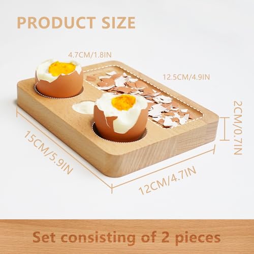 Reixuier - High Quality Beech Wood Egg Cup 2 Sets Prevents Egg Shells Staying on the Table, Ideal for Children's Camping and Family Tables
