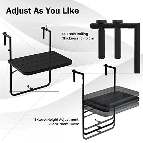 RELAX4LIFE - طاولة معلقة للشرفة من ريلاكس 4 لايف قابلة للطي بارتفاع قابل للتعديل مع مشابك تثبيت جانبية مقاومة للطقس والصدا للحديقة والشرفة والفناء اسود