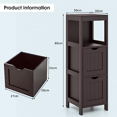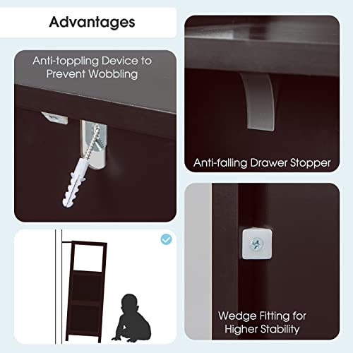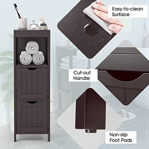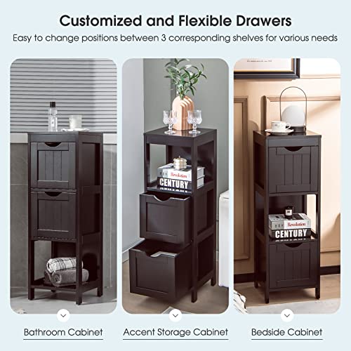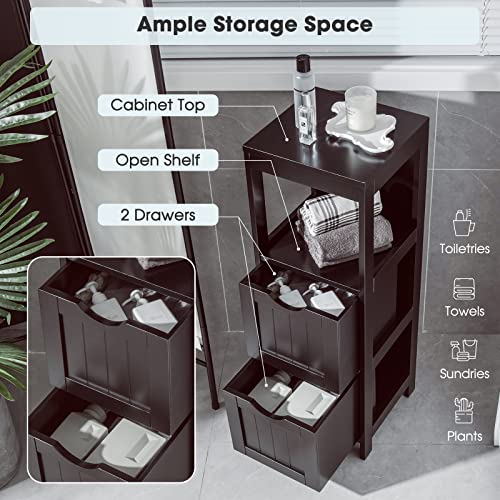 RELAX4LIFE - RELAX4LIFE Bathroom Floor Cabinet, Freestanding Wooden Cupboard Storage Cabinet with 2 Removable Drawers, Slim Storage Unit for Bathroom Living Room Kitchen (Espresso)