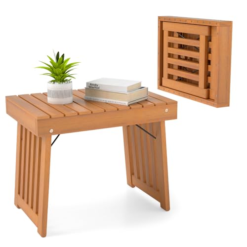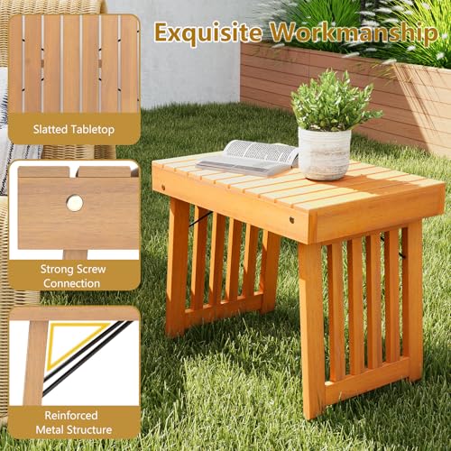 RELAX4LIFE - RELAX4LIFE Folding Outdoor Side Table - Acacia Wood Portable Patio End Table w/Slatted Tabletop, Outside Wooden Coffee Table for Backyard Balcony Porch Poolside Garden, Foldable Small Patio Table (1)