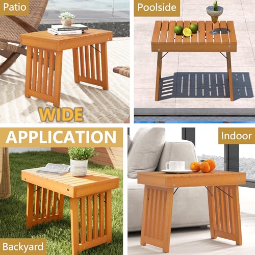 - [Indoor & Outdoor Companion]: This portable wooden side table is not just a practical addition, but a boost to your space decoration. It is ideal for the patio, poolside, backyard, garden, porch, deck or any indoor area as you like, matching well with your Adirondack chairs, chaise loungers, fire pit chairs and rocking chairs.