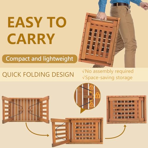 - [No Assembly Required]: This acacia wood folding patio table comes fully assembled and ready to use. Unfold it right out of the box and enjoy immediate convenience. The overall dimension is 20.5’’L x 14’’W x 16’’H, and the folded dimension is 20’’L x 14’’W x 2.5’’H.