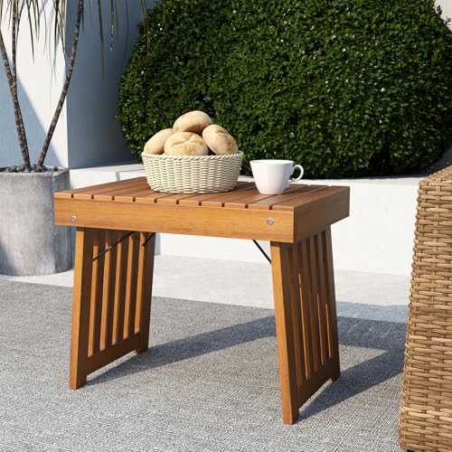 - [Natural Acacia Wood]: Crafted from solid acacia wood, known for its excellent sturdiness and crack resistance, this outdoor end table promises long-lasting use. Plus, the reinforced metal structure and strong screw connection make it ultra stable, weighting up to 180 lbs. Wax oil is recommended for maintaining the surface of the wood.