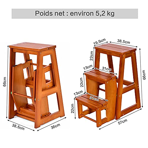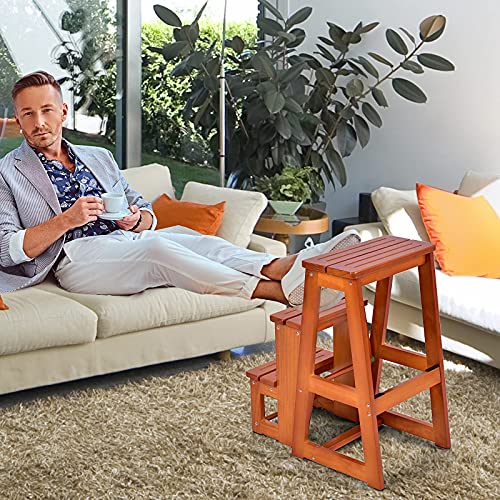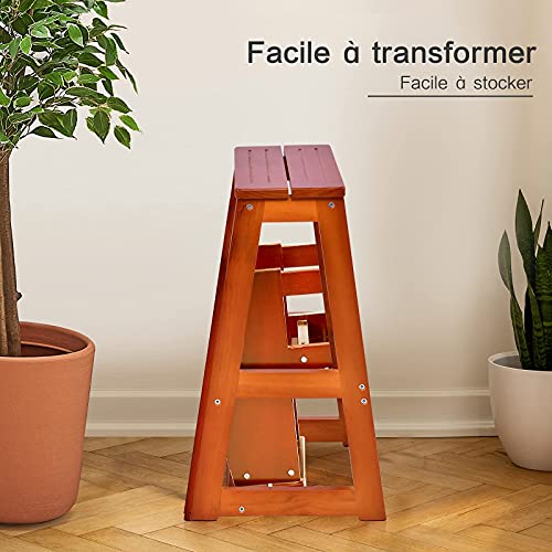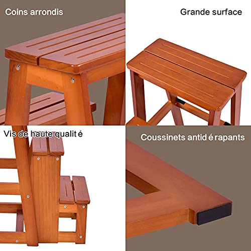 RELAX4LIFE - كرسي صغير للحمام محمول قابل للطي بـ3 درجات مصنوع من خشب الصنوبر من ريلاكس فور لايف، متعدد الاستخدامات مزخرف من الخشب الطبيعي مناسب للمطبخ وغرفة النوم والمكتب والمتجر (خشب الجوز)