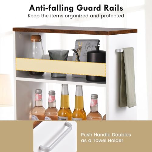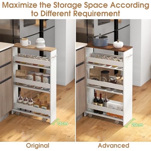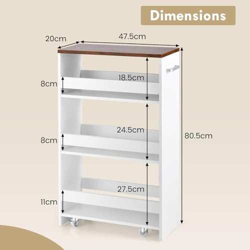 RELAX4LIFE - عربة تخزين رفيعة للغاية من 4 طبقات من ريلاكس 4 لايف 13 سم/20 سم مع عجلات وفرامل 360 درجة، موفرة للمساحة وضيقة للمطبخ والحمام (بني + ابيض، 48 × 20 × 81 سم)