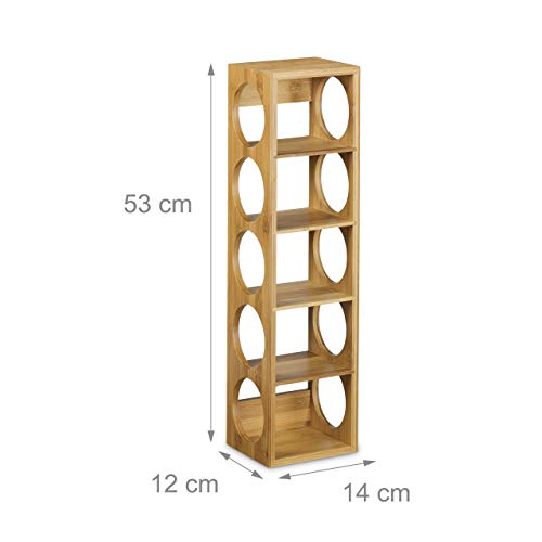 Relaxdays - Relaxdays 2 x Bamboo Wine Rack, Bottle Holder, 5 Compartments, Wooden Rack for Wine, Bottle Rack Modern, H x W x D: 53 x 14 x 12 cm, Natural