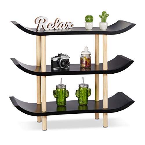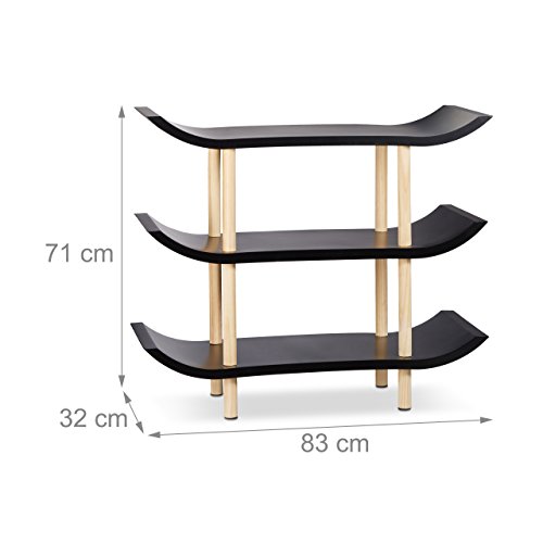 Relaxdays - Relaxdays 3-Tier Standing Shelf, Asian Style Decorative Rack, 4-Legged Wooden Bookcase HWD: 71x83x32 cm, Black