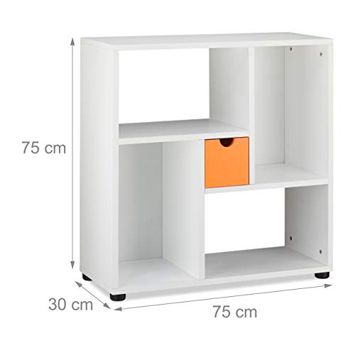 Relaxdays - Relaxdays 4-Compartments Wall Shelf, Floating Decorative Bookcase, 75x75 cm, White-Orange