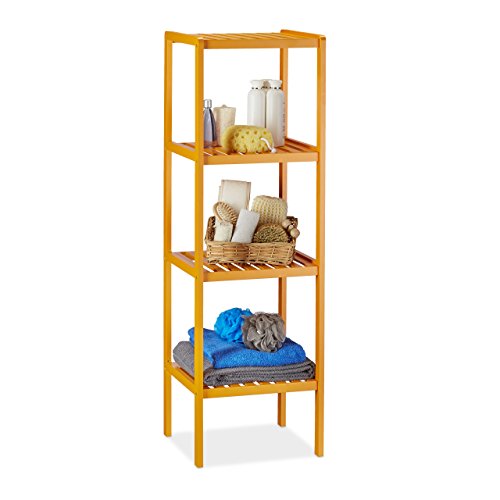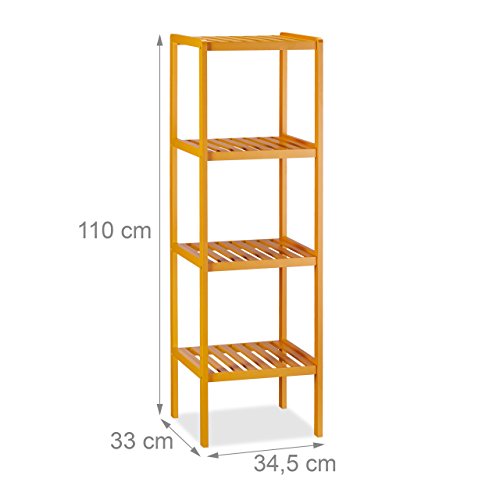 - Robust orange bamboo bath rack: Size: HxWxD: ca 110 x 34.5 x 33 cm - The 4 shelves provide ample storage space - The compact base is ideal for cramped spaces - Available in different colours