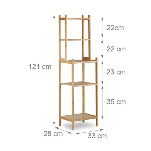 Relaxdays - Relaxdays Bamboo Bathroom Shelf, 5 Shelves for Kitchen, Hallway, Bathroom, Open Standing Shelf, H 121 x W 33 x D 28 cm, Natural
