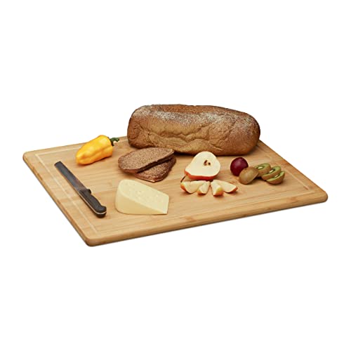Relaxdays - مجموعة ألواح تقطيع خيزران مضادة للبكتيريا مزودة بأخدود لتجميع السوائل، لوح تقطيع للمطبخ أو غطاء للموقد من ريلاكس دايز، مقاس 2 × 56.5 × 50 سم، لون طبيعي