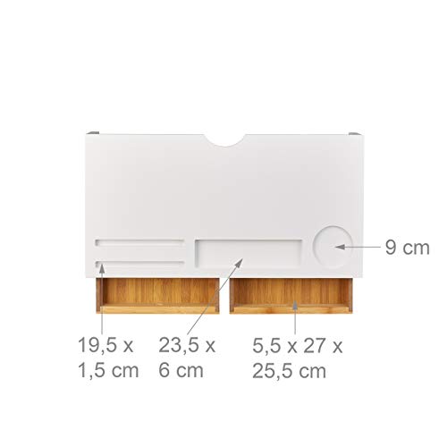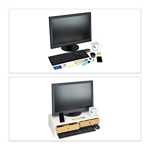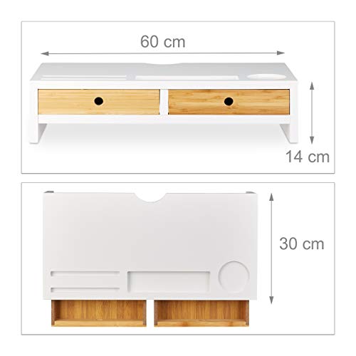 Relaxdays - Relaxdays Bamboo PC Monitor Stand, Screen Riser with 2 Drawers & Compartments, Computer Workstation HWD 14 x 60 x 30 cm, White/Natural