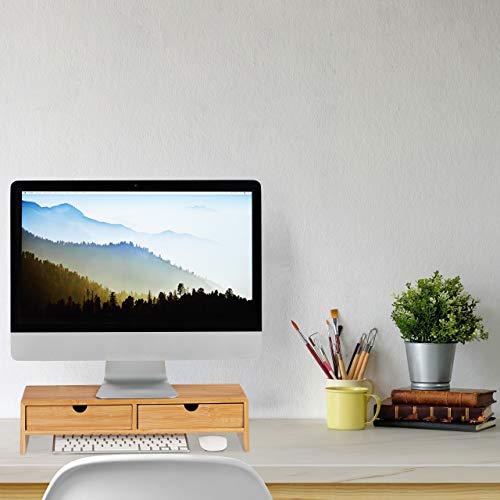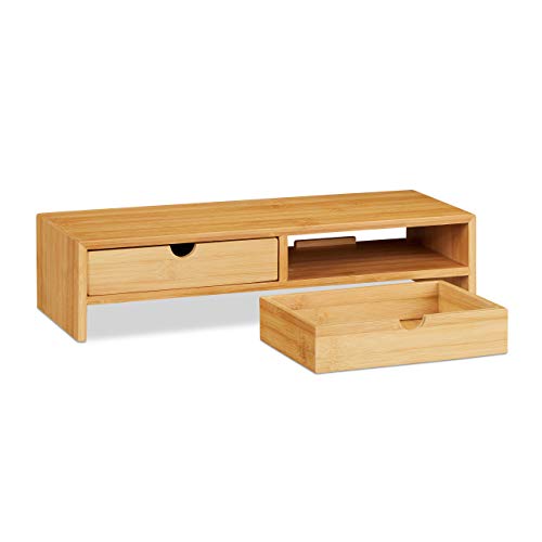 Relaxdays - Relaxdays Bamboo PC Monitor Stand, Screen Riser with 2 Drawers, Computer Workstation H x W x D 11.5 x 47 x 18 cm, Natural, Large