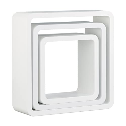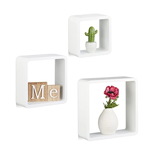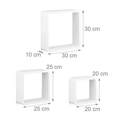 Relaxdays - مجموعة من 3 ارفف حائط عائمة خشبية MDF بتصميم مكعبات صغيرة من ريلاكس دايز - ابيض