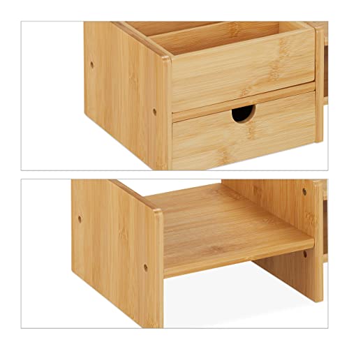 Relaxdays - ريلاكس دايز حامل شاشة بامبو درج و5 مساحات تخزين ارتفاع × عرض عمق: 13 70 19 سم مكتبي طبيعي 90% خيزران 10% لوح ليفي