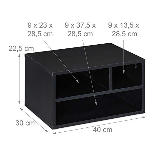 Relaxdays - مكتب حامل ورف الطابعة بـ3 مساحات تخزين من ريلاكس دايز، الارتفاع × العرض × العمق: 22.5 × 40 × 30 سم، أسود