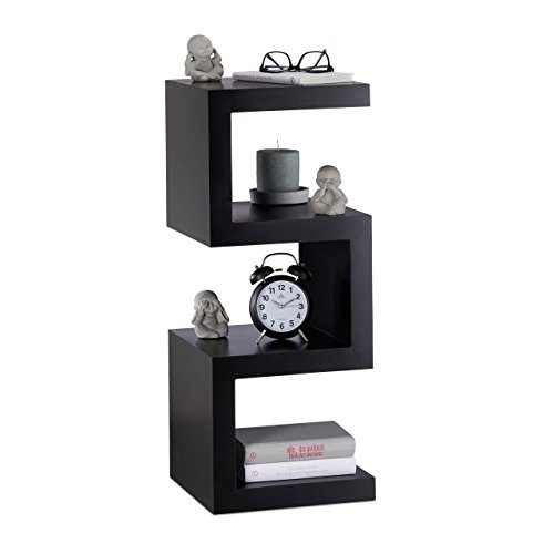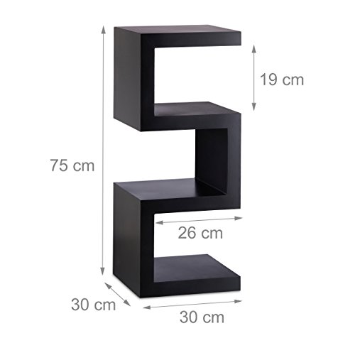 Relaxdays - Relaxdays Retro Free Standing Zigzag Shelf, Decorative CD Storage, Narrow Wooden Bookcase, HxWxD 75x30x30 cm, Black