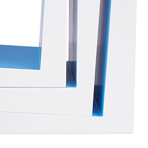 - Set: This bookcase set of 3 consists of 3 shelves in different heights and asymmetrical designs - Available in white-blue