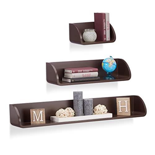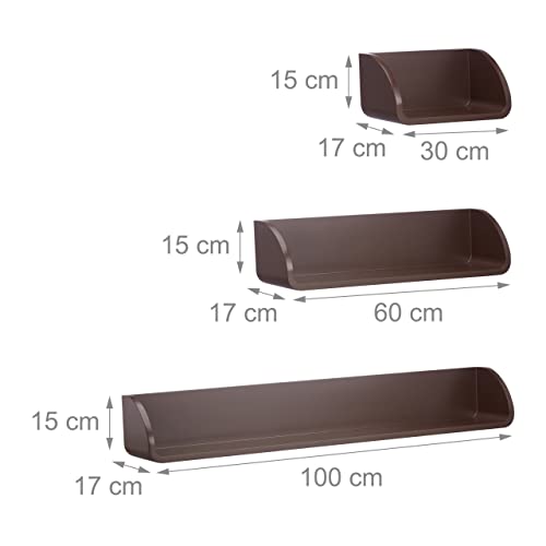 Relaxdays - ريلاكس دايز رف تعليق عصري للحائط، مجموعة من 3 قطع، لاقراص دي في دي، ديكور، عمق 17 سم، بني، ملمع