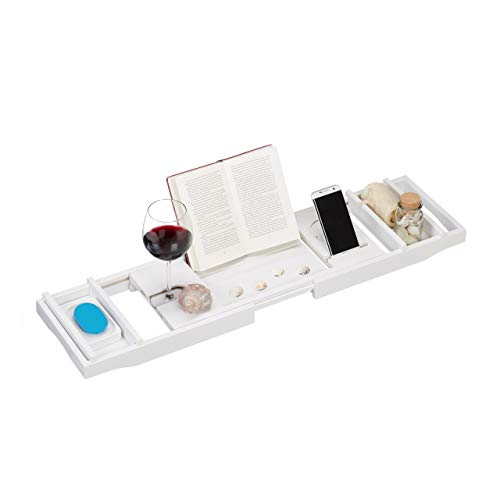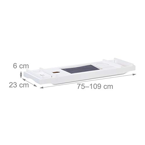Relaxdays - Relaxdays, White Bamboo Extendible Bathtub Shelf Wine Holder Bookend Soap Dish Bath Attachment 75-109 cm H x W x D: Approx. 6 x 109 x 23 cm